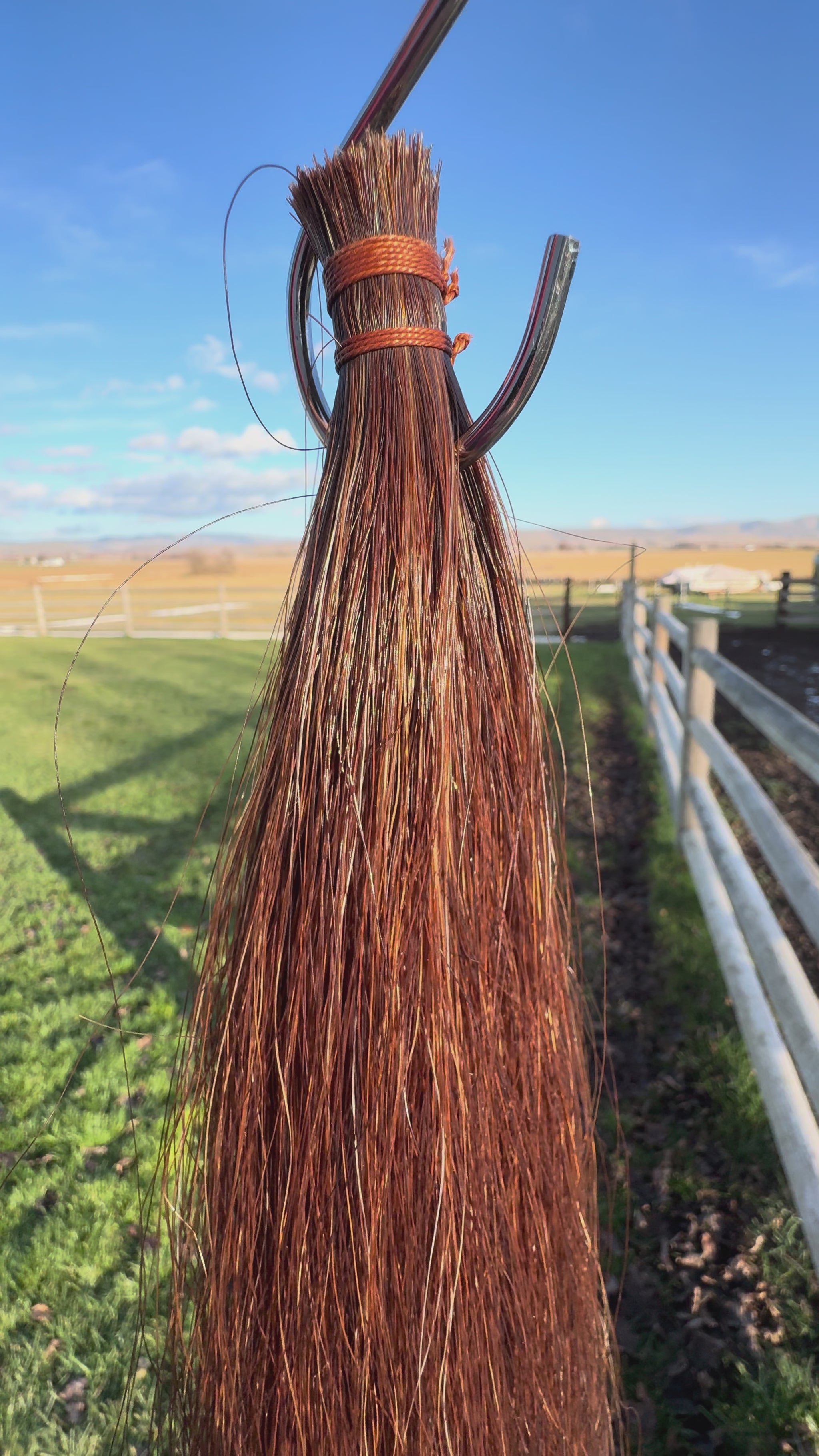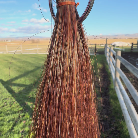 Natural Horsehair in brown. First picture shows 1/4 pound our smallest quantity sold. Second picture shows four small bundles tied together into 1 pound. It is processed and ready to use in braiding, hitching, tail extensions and craft projects. We have a large selection of lengths and colors available. It can vary from written and pictured description at times.