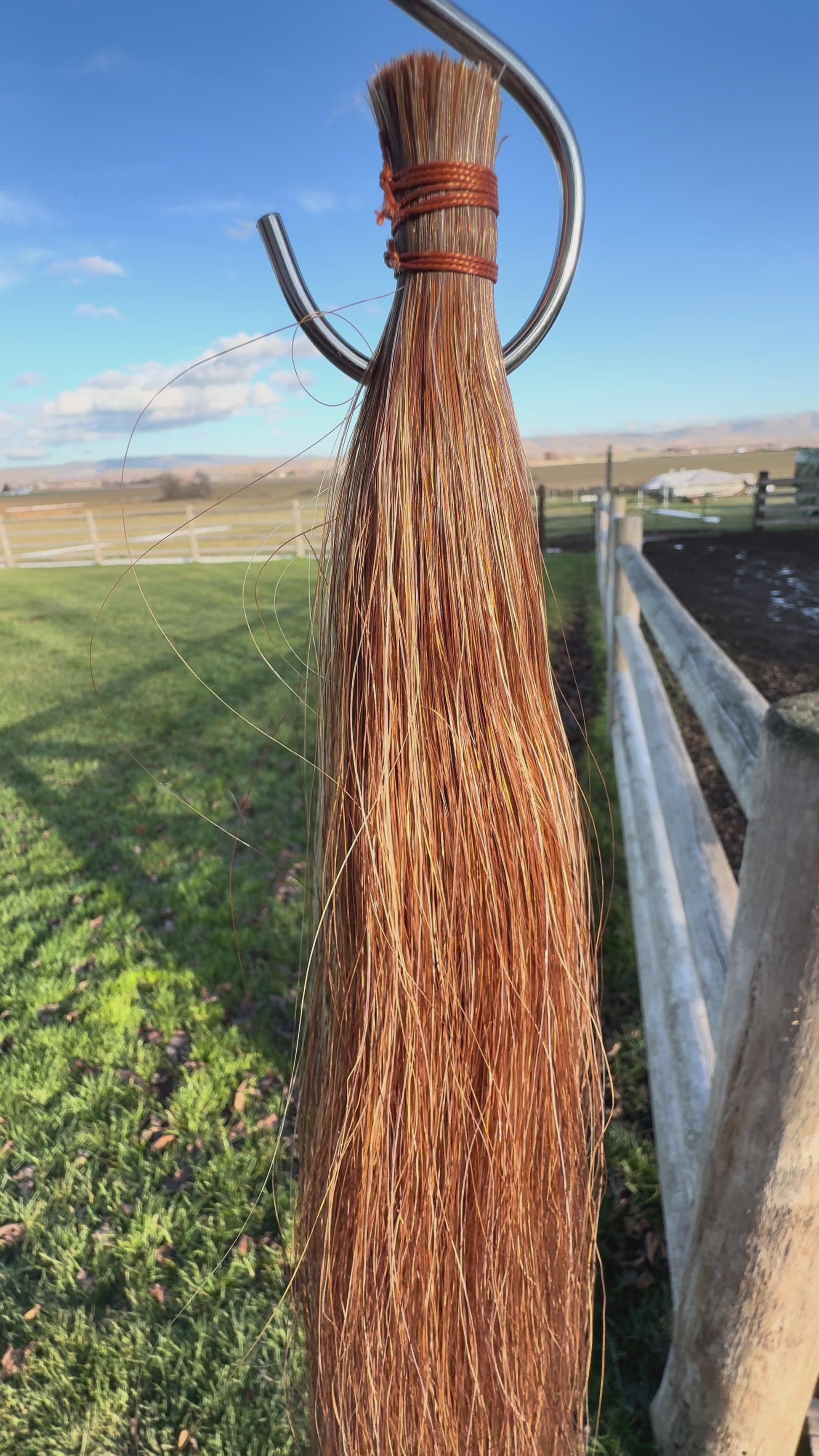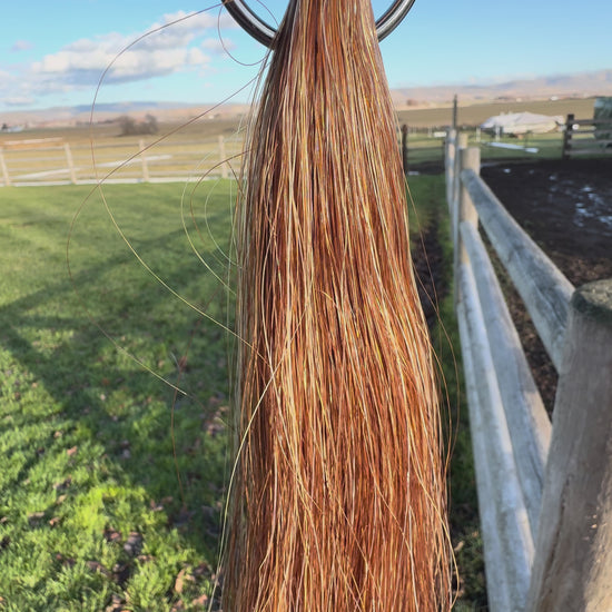 Natural Horsehair in medium sorrel color which tends to be an assortment of lighter browns. First picture shows 1/4 pound our smallest quantity sold. Second picture shows four small bundles tied together into 1 pound. It is processed and ready to use in braiding, hitching, tail extensions and craft projects. We have a large selection of lengths and colors available. It can vary from written and pictured description at times.