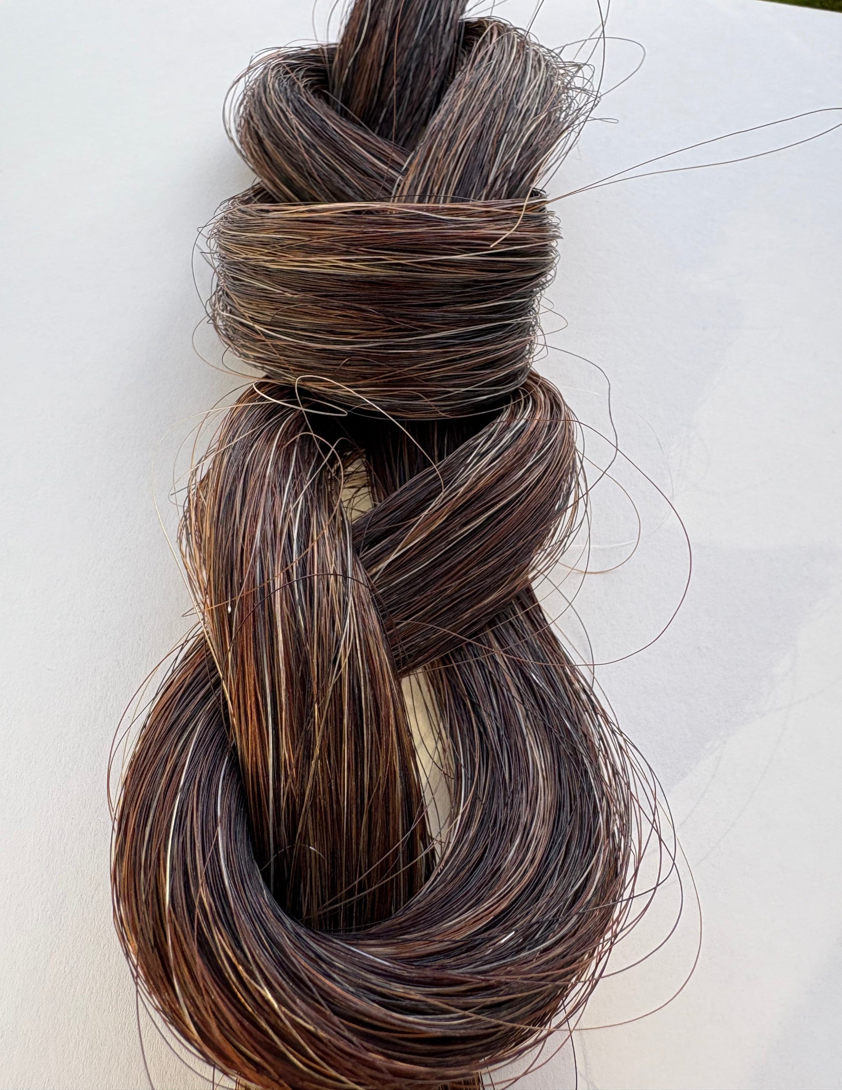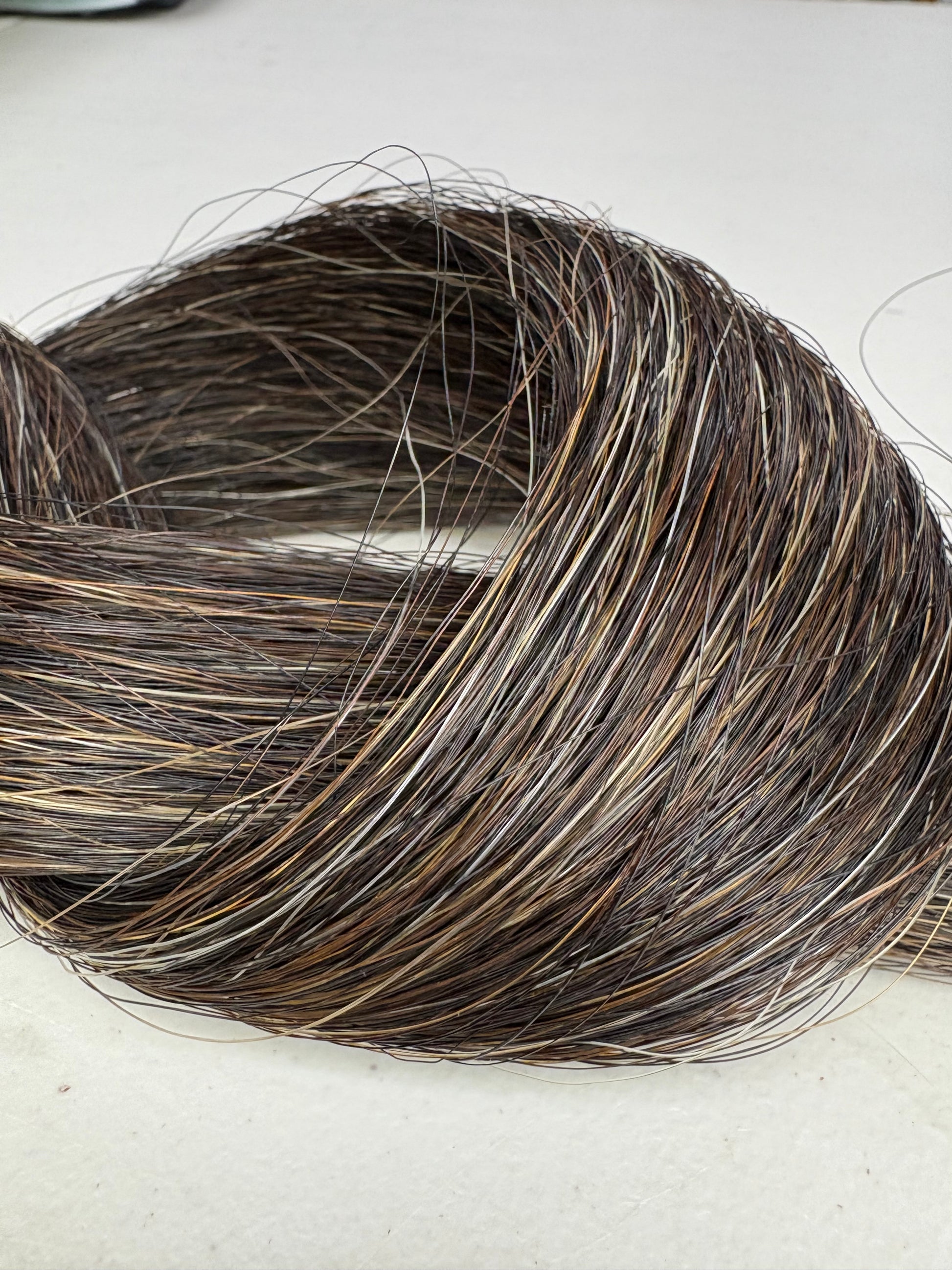 Dark mix is a natural mix of a variety browns colors and black First picture shows 1/4 pound our smallest quantity sold. Second picture shows four small bundles tied together into 1 pound. It is processed and ready to use in braiding, hitching, tail extensions and craft projects. We have a large selection of lengths and colors available. It can vary from written and pictured description at times.